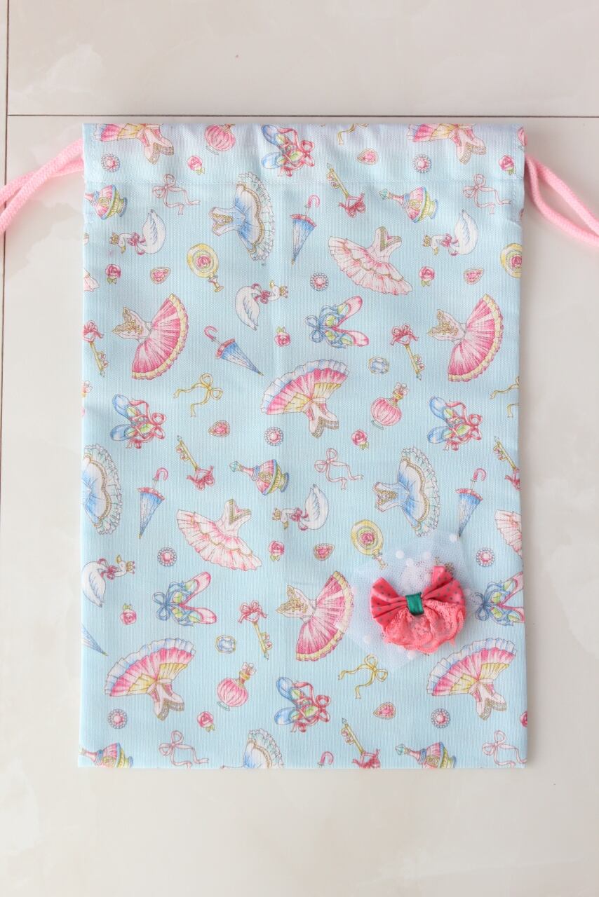 巾着【バレエ×水色×ピンクリボン】給食着袋・お着替え袋