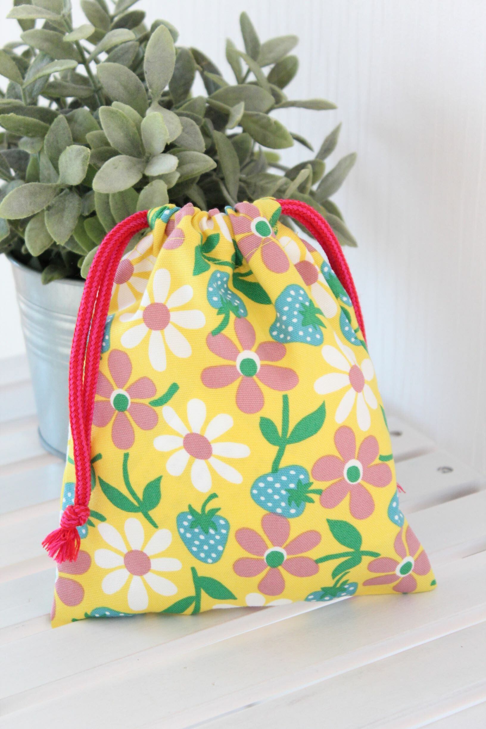 【黄色×イチゴ】20×17cm コップ袋・巾着・歯ブラシ袋