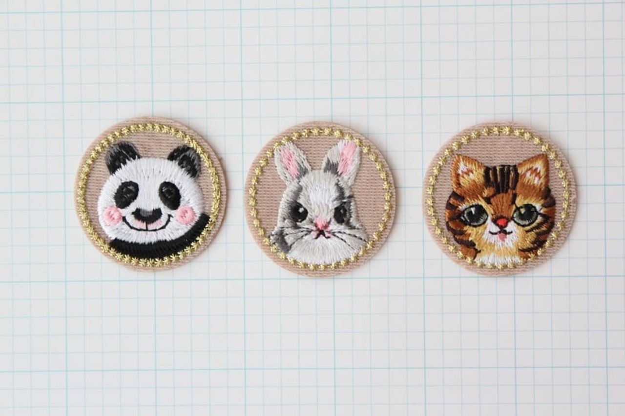 高品質刺繍ワッペン【パンダ・ウサギ・ネコ】コイン型