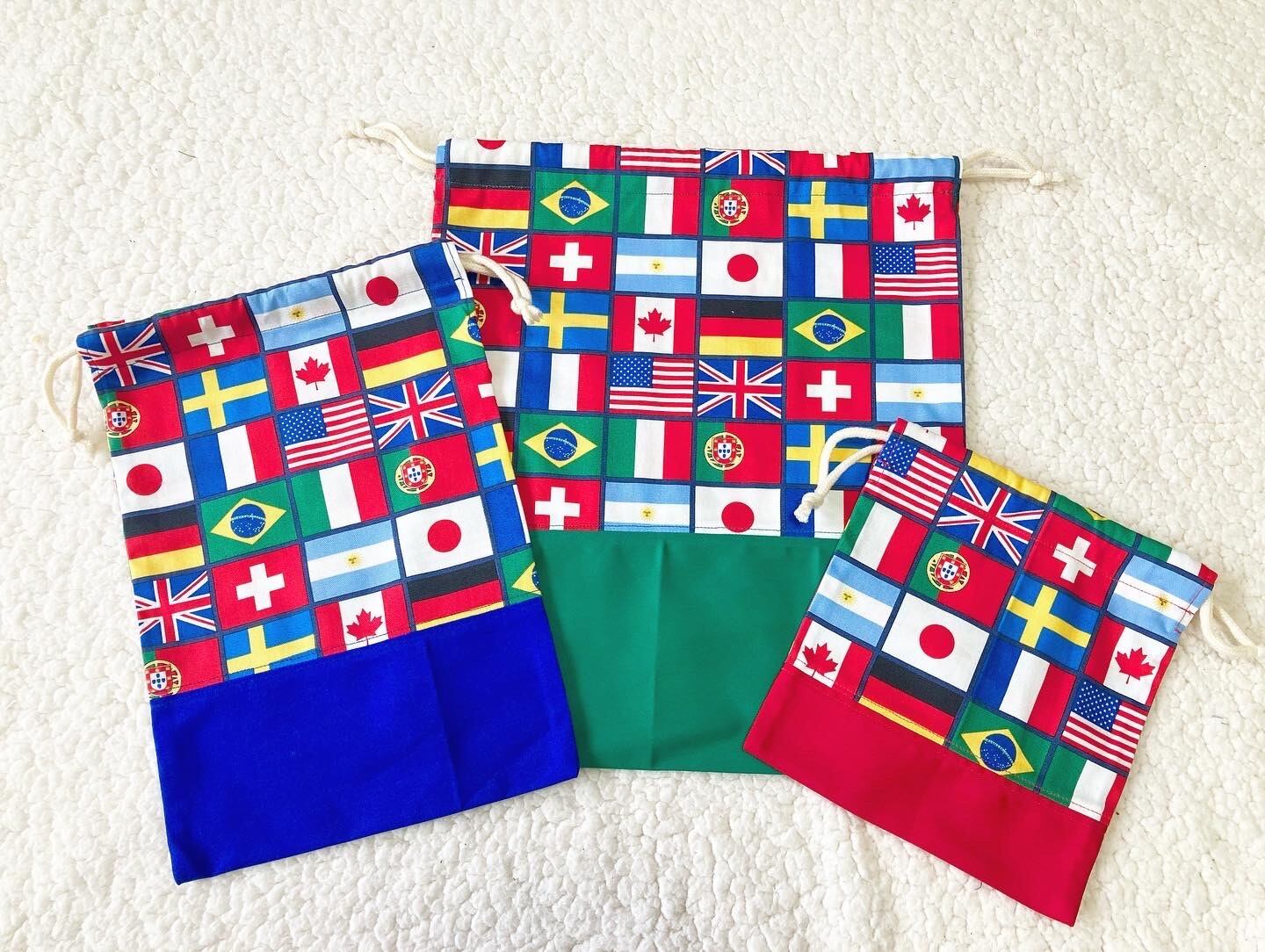 持ってるだけで気分が上がりそうな、ポップなカラーの国旗巾着シリーズです(^^)